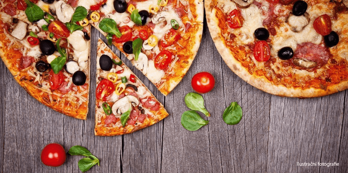 - Naše (pomodoro, sýr, olivy, houby, parmská šunka, kozí rohy, pikantní koření, trošku chilli, rukola)
