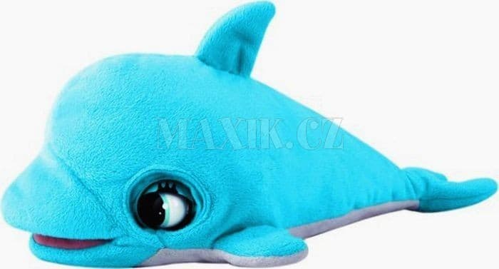 - Po stisknutí označeného místa vydává delfínek dva různé zvuky, otevírá oči a pusu.