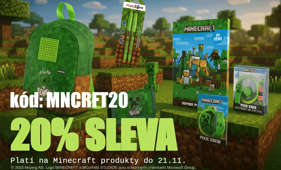 Slevový kód PixieCrew, který vám produkty s motivem Minecraft zlevní o 20%.