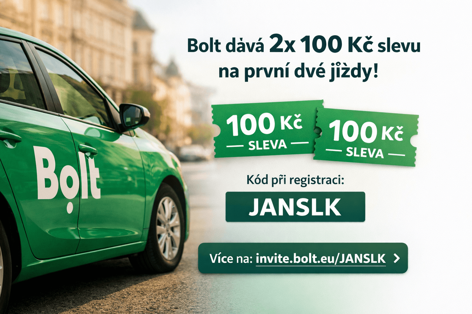 Kdyby se někomu hodilo: Bolt dává 2× 100 Kč slevu na první dvě jízdy.