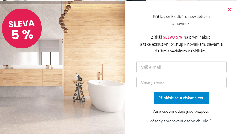 Nakupte v e-shopu BPS-koupelny.cz se slevou ve výši 5% Pro uplatnění akce klikněte na Získej kód a ve spodní liště se přihlaste k odběru jejich newsletteru. Obratem obdržíte osobní slevový kupón.
