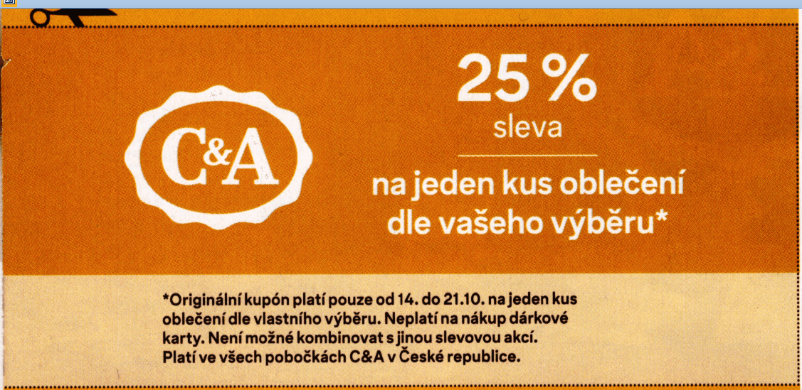Slevový kupon, který vám zlevní jeden produkt dle vašeho výběru o 25%. Originální kupon musíte ho předložit na prodejně - měl by vám přijít do poštovní schránky.