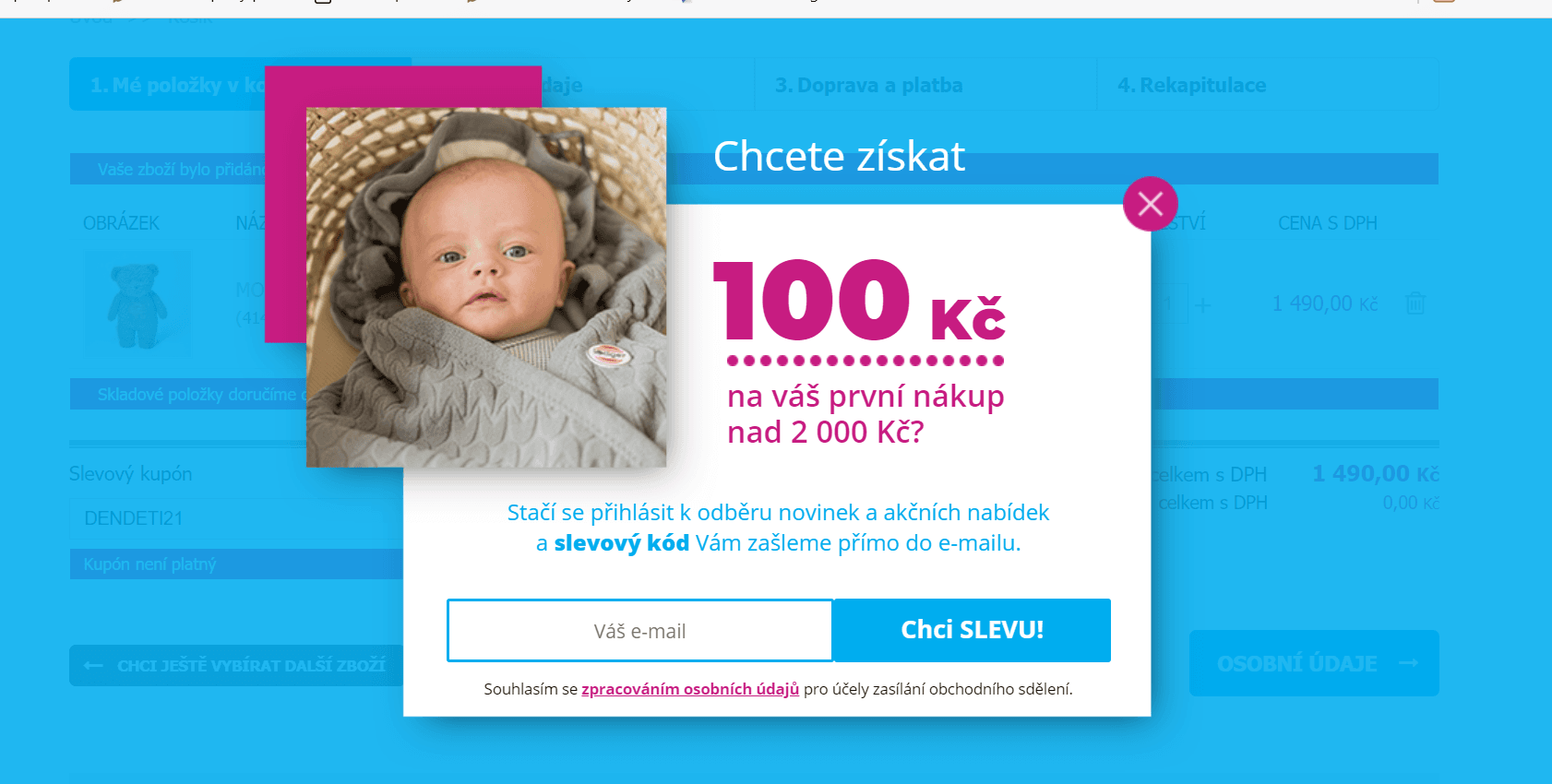 Zaregistrujte se k odběru novinek na ondalek.cz a získejte slevový kód. Na stránkách e-shopu vyčkejte na vyskakovací okno, kde zadáte svůj e-mail a na ten obdržíte unikátní slevový kód, který Vám první nákup nad 2000 Kč zlevní o 100Kč.