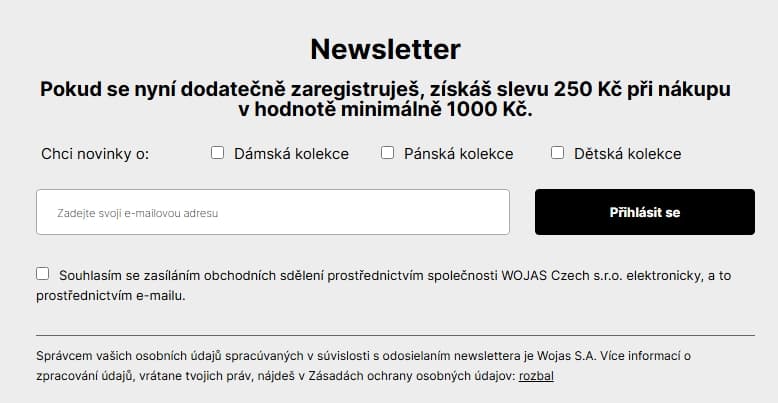 Wojas.cz - slevový kód -250 Kč z nákupu nad 1000 (registrace)